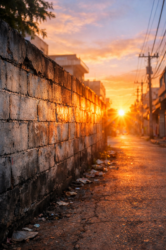 パドマ通りの薄汚れたブロック塀に、まばゆい朝焼けが照り付けている。寝不足のまなこに、鮮やかな朝の光はまぶしく映った。