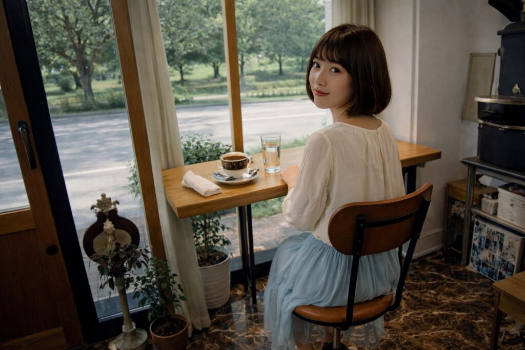 テーブルを挟んだ距離、午後の光が差し込む部屋という冒頭のイメージに重なる内容。同じ空間にいながら交わらなかった気持ちや、暮らしの中に残る小さな余韻が心を静かに揺らします。作者の他の解説から類推すると、雨と緑の呼吸、植物の息づかい、カフェの静かな時間など、湿気・雨音・季節の移ろい、過去の喪失を優しく受け止める大人の視点が織り交ぜられています。最終的に「今この瞬間の温かさ(コーヒーの温度や隣人の体温)が本物」というメッセージで締めくくられるような、穏やかな余韻を残す恋の風景です。