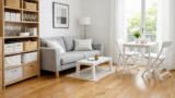 無垢材のような温もりはなかなか難しくても、木目調のシートやラグを取り入れるだけで、雰囲気がぐっと北欧ナチュラルに近づきますし、照明やファブリックでアクセントカラーを加えるのも効果的です。