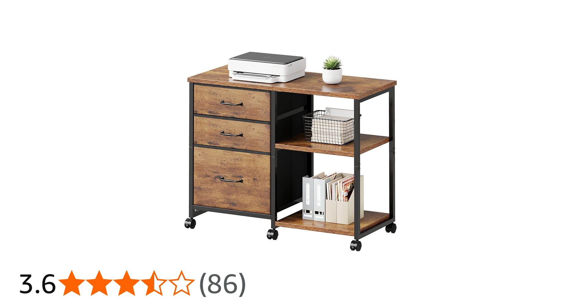 Maihail サイドキャビネット デスクワゴン 布製 袖机 層板付き サイドワゴン 3段 オフィスワゴン A4対応 プリンター台 大容量 キャスター付き デスク下収納 ビンテージ+ビンテージ